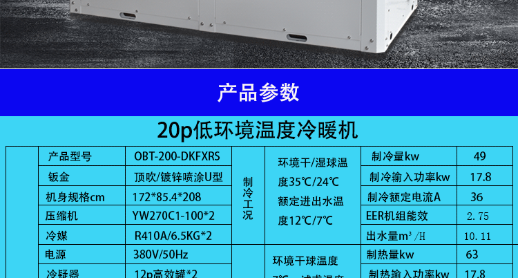 機組型號:OBT-50-DKFXLN2020新款超低溫冷暖50模塊機