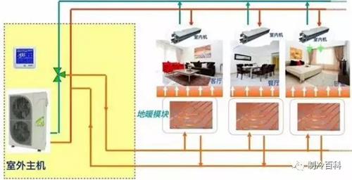 簡單說,兩聯供的室外主機,在夏天的時候,產出冷水,冷水經過循環系統在風機盤管進行熱交換,將冷氣吹出;在冬天的時候產生熱水,將熱水在專用管道內循環流動,加熱地面裝飾層,通過地面輻射和對流的傳熱使地面升溫(水地暖)。